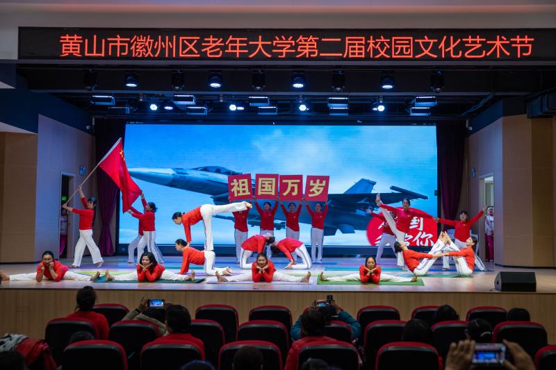 日前,徽州区老年大学“筑梦夕阳绽芳华,文化兴徽增活力”校园文化艺术节圆满落幕:太极、瑜伽、舞蹈、戏曲、歌咏、器乐、小品等39个节目接续上场。击鼓表演《爱我中华》气势磅礴,大合唱《壮美延安》《我的祖国》激情豪迈,舞蹈《上春山》灵动优美,《杨氏24太极拳》刚柔并济,汉服与花窗剪纸展演气度非凡。场上高潮迭起,台下掌声此起彼伏,展现了老年人的精神风貌,真正把老年大学办成了老年人学习知识的课堂、愉悦身心的乐园。